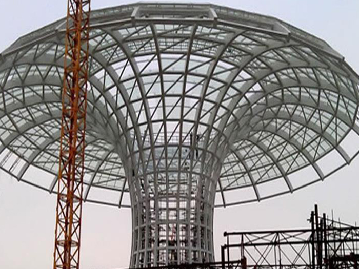 二、球形网架结构因其结构新颖,受力合理,自重轻、用钢量低等优点。如大型体育场馆球形姜堰螺栓球网架、公共场馆球形网架、电厂姜堰螺栓球网架、水泥工业球形网架、仓储物流球形网架、姜堰干煤棚工业球形网架、姜堰收费站姜堰加油站球形网架、展览中心、影剧院、商场、航站楼、候车厅、工厂姜堰车间、仓库、电视塔等球形螺栓球节点网架。国内球形网架结构主要分为:姜堰焊接球节点网架及螺栓球节点网架两种。螺栓球节点网架其构件工厂内加工量较大,现场安装便捷,适用于现场工期紧,姜堰施工条件、用电量受制约,网架形状复杂、姜堰杆件定位困难的异形结构。螺栓球节点球形网架系统基本由姜堰杆件、螺栓球、支撑支座等组成。按照节点形式可分为交叉姜堰桁架体系、四角锥体系、三角锥体系等。支撑方式多为固定支座支撑。对于大面积、大跨度及有特殊受力或伸缩要求的网架结构可采用橡胶支座、滑移支座、球铰支座等支撑形式,以满足结构自身的受力稳定、均衡,便于内力释放等设计要求。